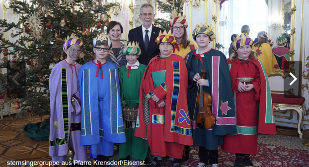 Die Kremsdorfer Sternsinger singen für den Bundespäsidenten Van der Bellen das Lied "Wir sind die drei Könige" (Jänner 2018)