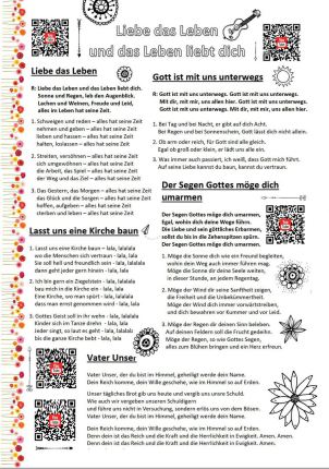 Liedblatt mit QR-Code für den Gottesdienst